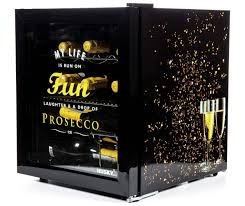 De Husky KK50-PROSECCO is een opvallende verschijning. Een mooie zwarte displaykoeler met opvallende gekleurde opdruk. Een handige koeler voor bijvoorbeeld koeling van uw flessen prosecco, maar uiteraard ook voor blikjes en/of andere flessen. Een echte eye-catcher op of bij uw bar, of natuurlijk ook gewoon in de woonkamer of keuken. De koeler met een netto inhoud van 45.8 liter is uitgerust met een stevig rek en 2 verschillende wijnrekken zodat u uw producten gescheiden kunt bewaren. De koeler ontdooit automatisch, dus deze bepaalt zelf wanneer deze ontdooid moet worden.