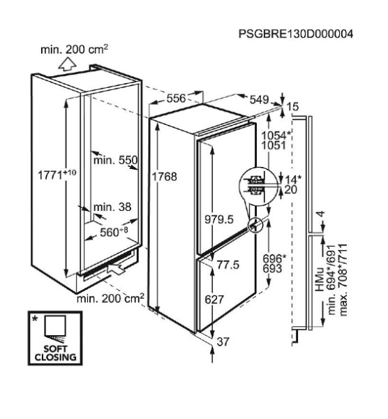 | Soort | 2-deurs Koelvriescombinatie inbouw |