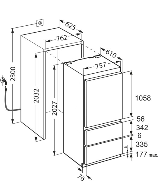 | Soort | 2-deurs Koelvriescombinatie inbouw |