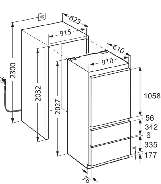 | Soort | 2-deurs Koelvriescombinatie inbouw |