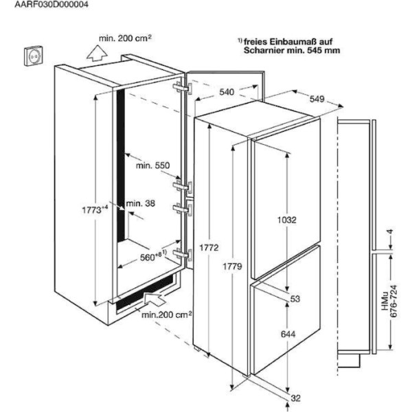 158cm - Glijbevestiging - Ook geschikt voor IKEA-METOD keukenkast van 200cm - 160L+72L - LowFrost - Inbouw Koelvriescombinatie / AEG SCE 616F3 LS