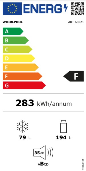 178cm - Glijbevestiging - 194L+79L - LessFrost - Koelvriescombinatie inbouw / Whirlpool ART 66021