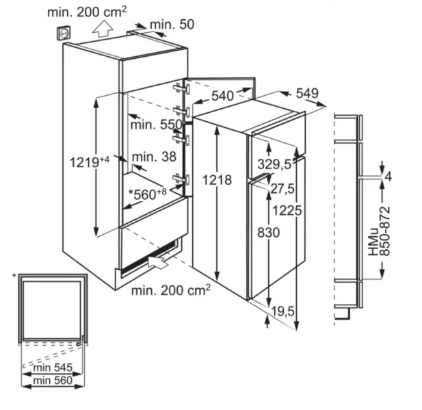 Inbouwafmetingen (HxBxD) in mm 1225x560x550