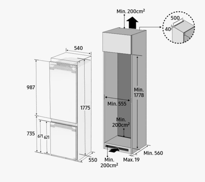 178cm - Deur op deur - 190L+74L - NoFrost - Vershoudzone - Inbouw Koelvriescombinatie / Samsung