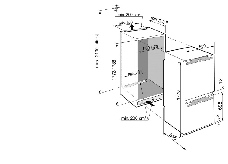 | Hoogte koelvries | 170 - 179 cm hoog |
