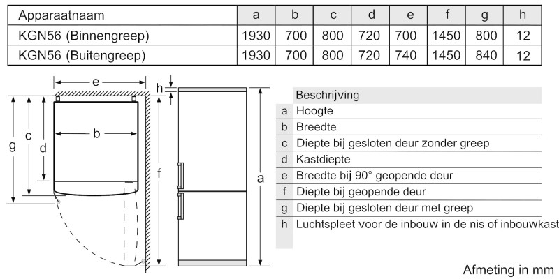 Afmetingen toestel (H x B x D): 193 x 70 x 80 cm