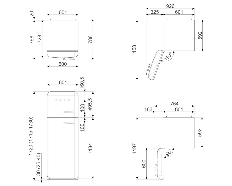 172cm - 222L+72L - 31dB - Scharnieren Links - Zwart - 0-gradenzone - Vrijstaande Koelvriescombinatie / Smeg FAB 30LBL 5