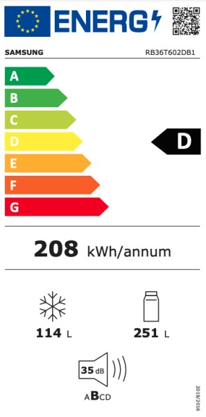 194cm - 251L+114L - Zwart - NoFrost - Koelvriescombinatie vrijstaand / Samsung RB 36T602DB 1