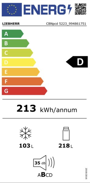 185cm - Designmotief - 218L+103L - NoFrost - BioFresh 0°C Zone - Koelvriescombinatie vrijstaand / Liebherr CBNPCD 522320