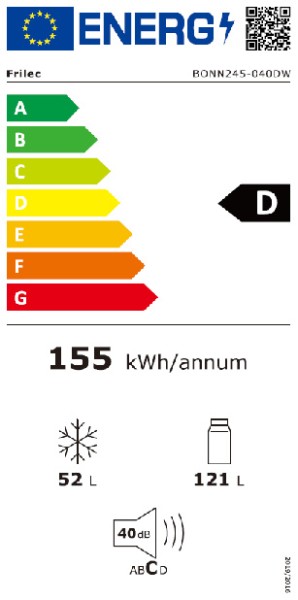 - 173 liter netto inhoud (121 liter koelen + 52 liter vriezen)