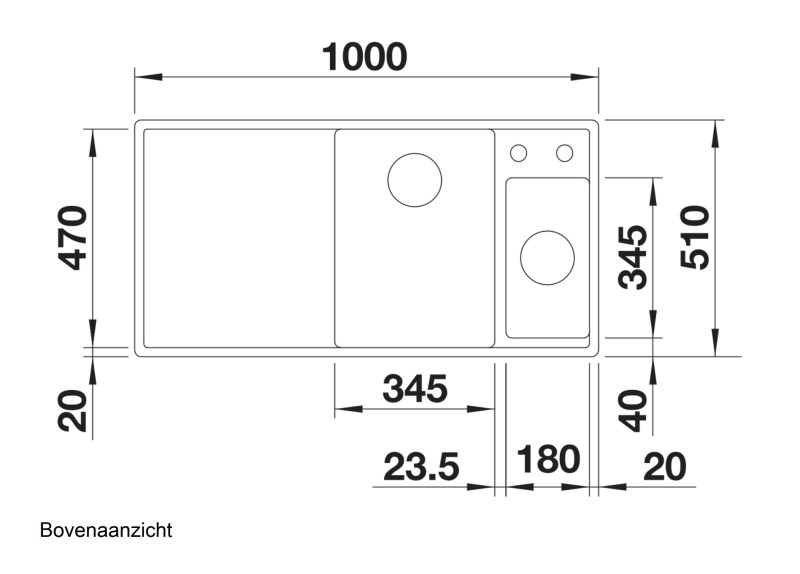 | Breedte (buitenmaat toestel) | 1.000 mm |