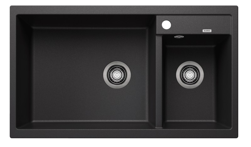 Plaatsbesparend afloopgarnituur,korfventielen 3 ½"BLANCO METRA 9Granieten spoeltafel in SILGRANIT® PuraDur®