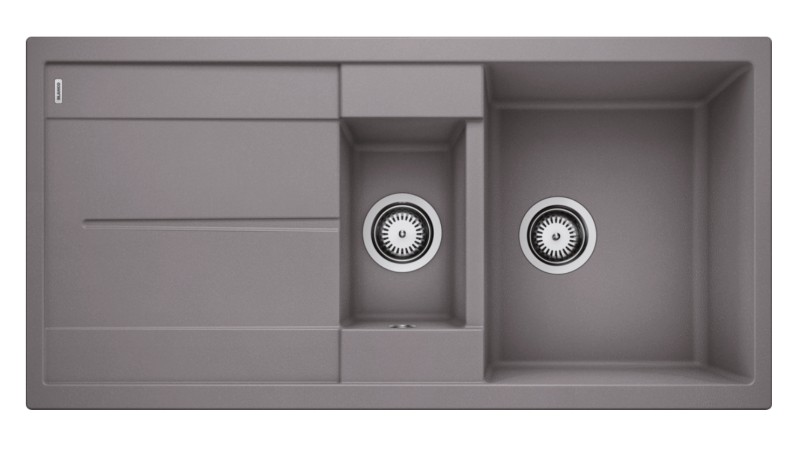 Plaatsbesparend afloopgarnituur,korfventielen 3 ½"BLANCO METRA 6 SGranieten spoeltafel in SILGRANIT® PuraDur®
