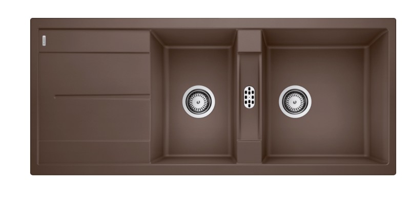 Plaatsbesparend afloopgarnituur, korfventielen 3 ½"BLANCO METRA 8 SGranieten spoeltafel in SILGRANIT® PuraDur®