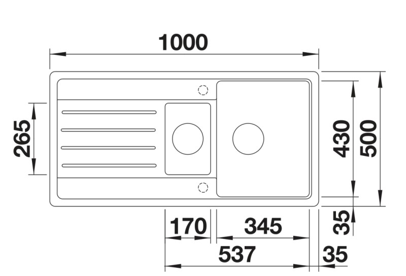 | Breedte (buitenmaat toestel) | 1.000 mm |