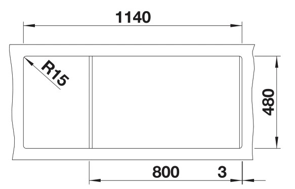 De doorlopende rand bakent het watergebied af en beschermt het werkblad tegen spetters