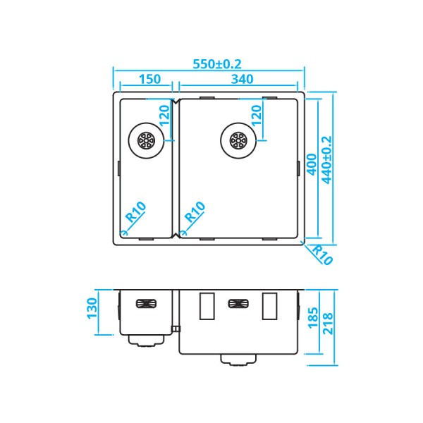 Diepte: 185+130mm