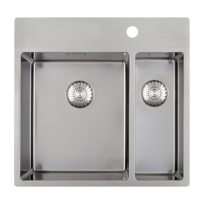 Roestvrijstaal, diepte 185+130mm, inclusief korfplugset met design overloop en klemmen. Extra (kraan)gat: € 50,00.