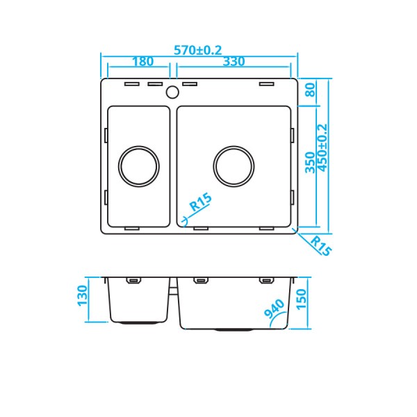 Diepte: 130+150mm