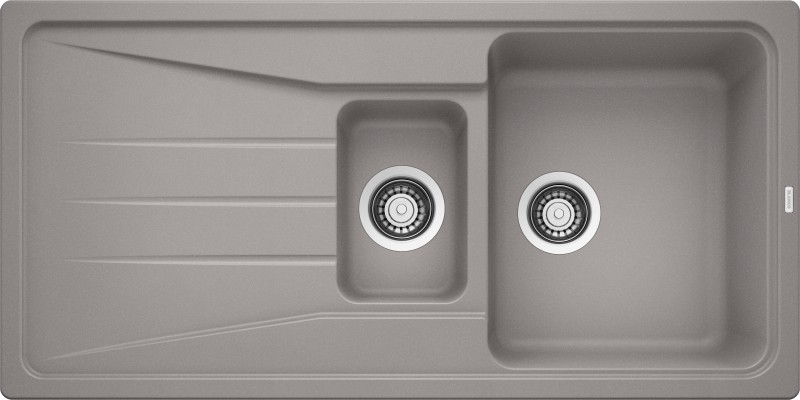 Plaatsbesparend afloopgarnituur, 2 korfventielen 3 1⁄2"BLANCO SONA 6 SGranieten spoeltafel in SILGRANIT® PuraDur®