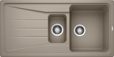 Plaatsbesparend afloopgarnituur, 2 korfventielen 3 1⁄2"Modern, onafhankelijk ontwerpKeukentaken worden veel gemakkelijker dankzij de ruime hoofdbak en de praktische extra bak