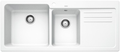 Plaatsbesparend afloopgarnituur, 2 korfventielen 3 1⁄2"Ruime spoelbak biedt voldoende ruimte voor keukentakenAangename vorm die goed in het keukenontwerp past