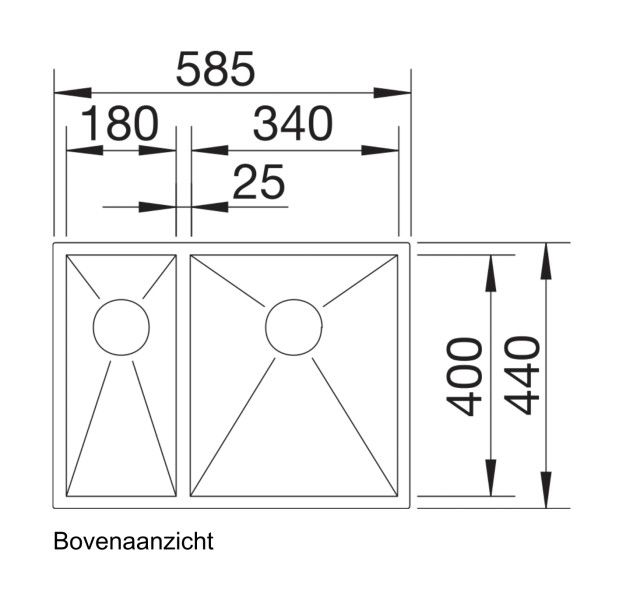 Een trekknop is niet inbegrepen. Voor automatische lediging wordt aanbevolen een uitbreidingsset inclusief trekknop bij te bestellen. Verbinding en reukafsluiter inbegrepen.ZEROX 340/180-IF- Spoelbakken met nulradius en rechtlijnige geometrie