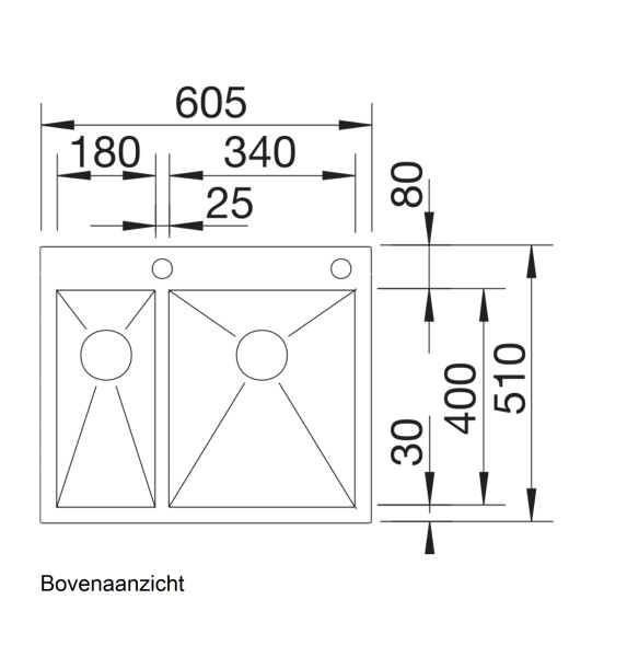 Afloopgarnituur en reukafsluiter inbegrepen.Een ronde trekknop in chroom is inbegrepen. Andere trekknopmodellen moeten steeds apart worden besteld.BLANCO ZEROX-IF/Aroestvrij staal