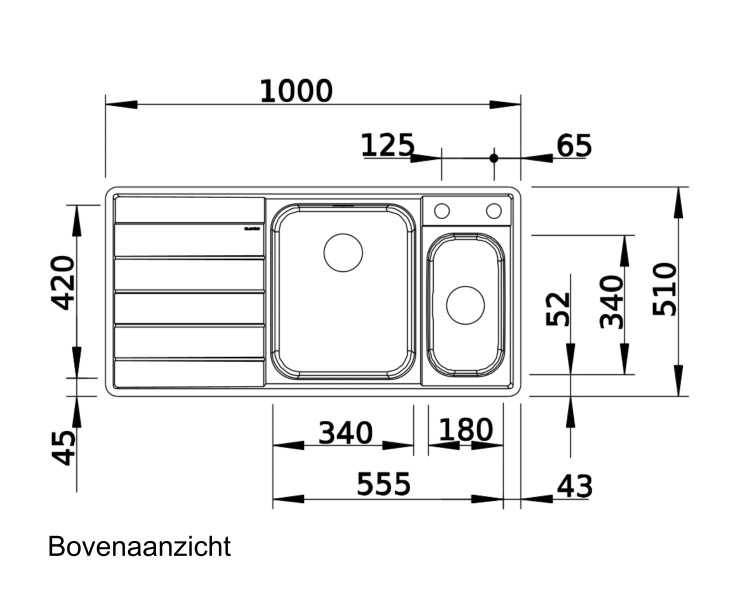Franke BOX - Vlakbouw-, SlimTop- en onderbouwspoelbak / 560 x 450 mm / Glad / Grote bak RECHTS BXX 260
