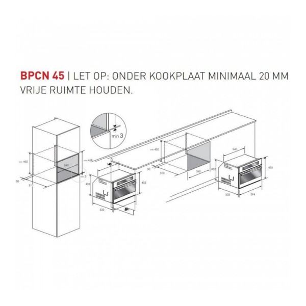 45 cm hoog | Combi : oven + microgolf | zonder stoom