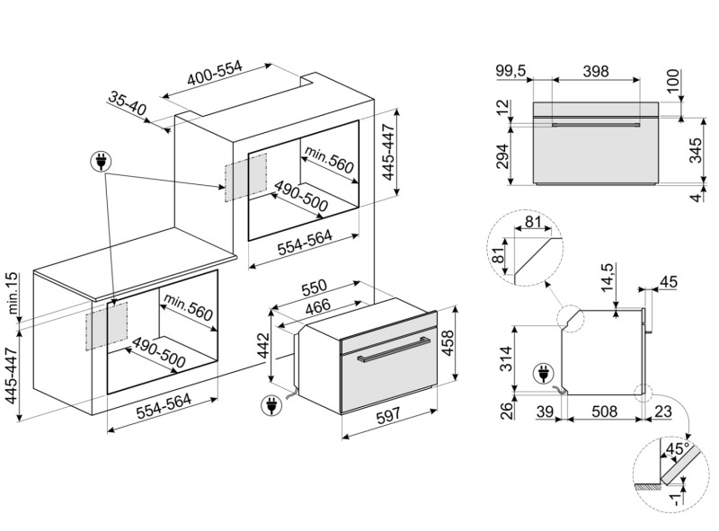 45 cm hoog | Combi : oven + microgolf | zonder stoom