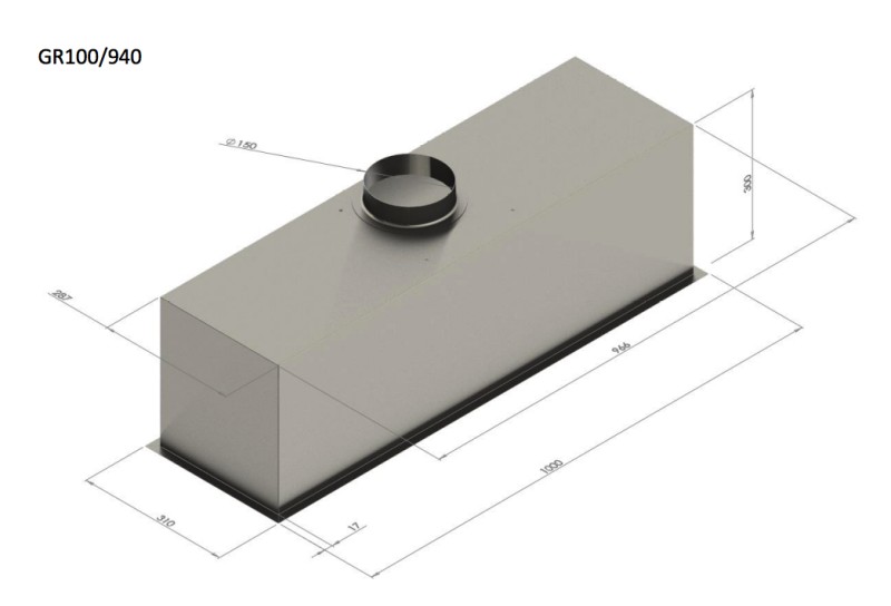 Venduro inbouwgroep - 100cm GR100/940 - Dampkap met geïntegreerde afzuiging, zonder spots en bediening