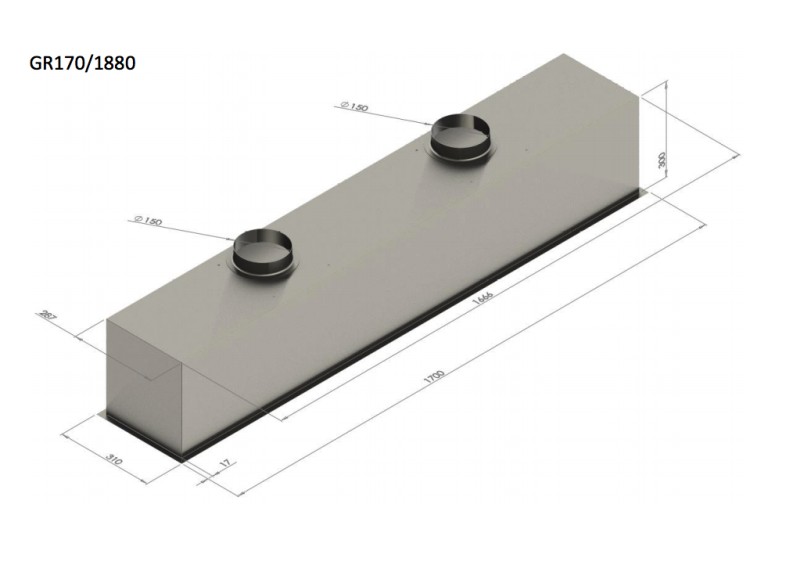 Venduro inbouwgroep - 170cm GR170/1880 - Dampkap met geïntegreerde afzuiging, zonder spots en bediening