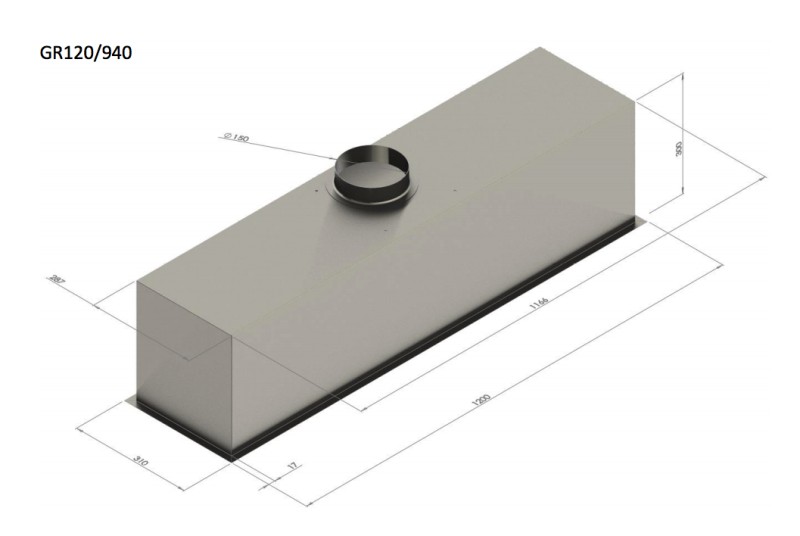 Venduro inbouwgroep - 120cm GR120/940 - Dampkap met geïntegreerde afzuiging, zonder spots en bediening