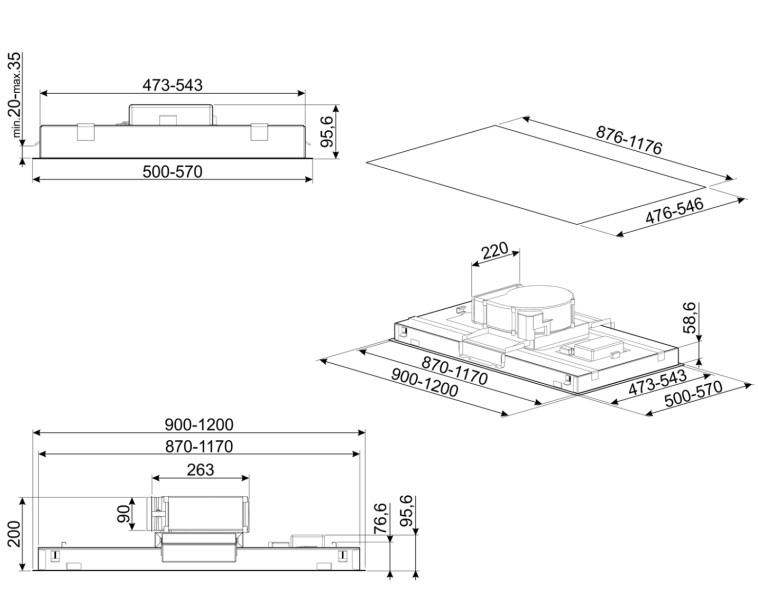 Smeg KLT 120 LXS Dampkap inbouwgroep
