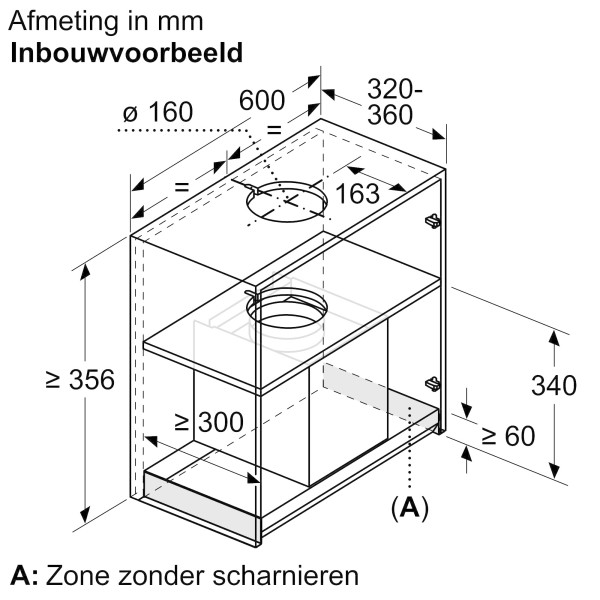 Inbouwafmetingen (HxBxD): 340 x 560 x 300 mm