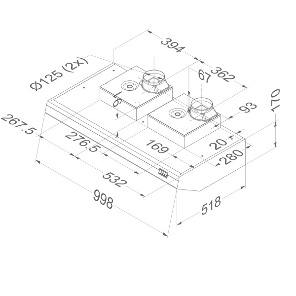 Product afmetingen (BxDxH) (mm) 998 x 518 x 261