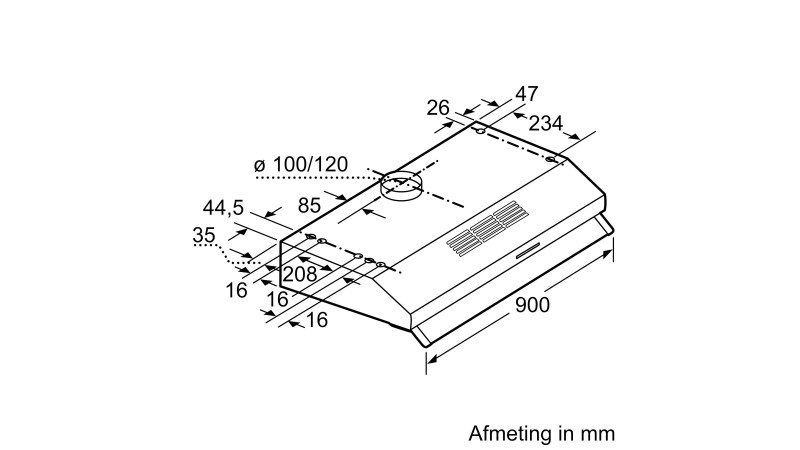 Onderbouwdampkap: voor montage onder een bovenkast of aan de wand