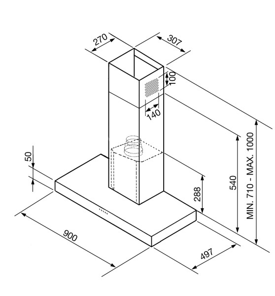 90 cm breed | Luchtafvoersysteem OF recirculatiesysteem (koolstoffilter/plasmafilter) | normaal: 400 - 700 m3/u