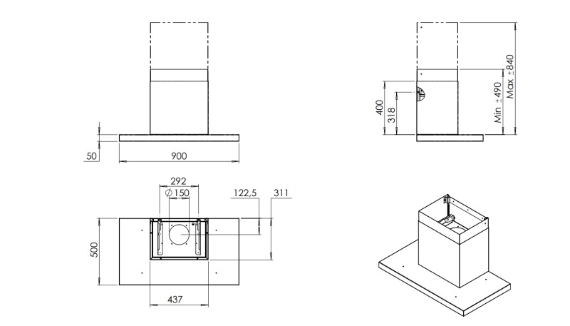 90 cm breed | Luchtafvoersysteem OF recirculatiesysteem (koolstoffilter/plasmafilter) | hoog: vanaf 700 m3/u