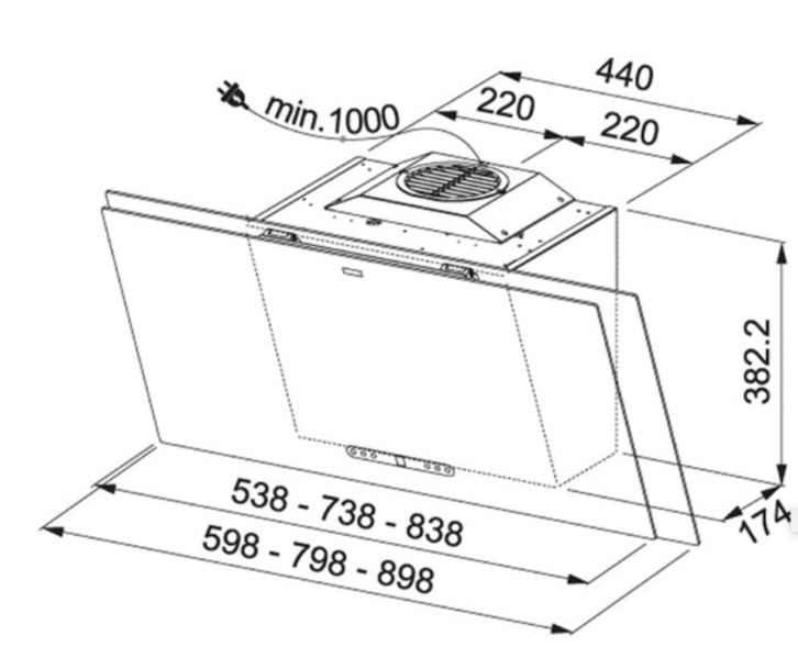 | Soort | Dampkap wand/schouw |