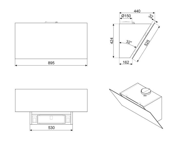 110cm - 554 m² - zwart - Dampkap wand/schouw / Smeg KT 110 BLE