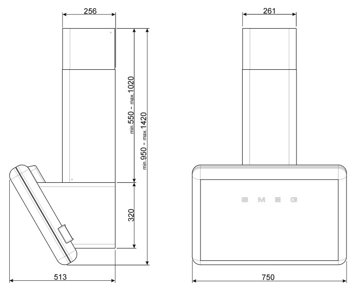 110cm - 554 m² - zwart - Dampkap wand/schouw / Smeg KT 110 BLE