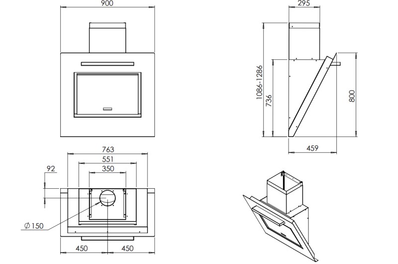 Venduro AXIS II Wanddampkap 90 cm, zonder motor AXIS 2WI90 ZM