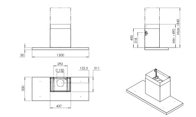 120cm - Inox - Randafzuiging - Eilanddampkap zonder motor / Venduro THINEI 120 ZM