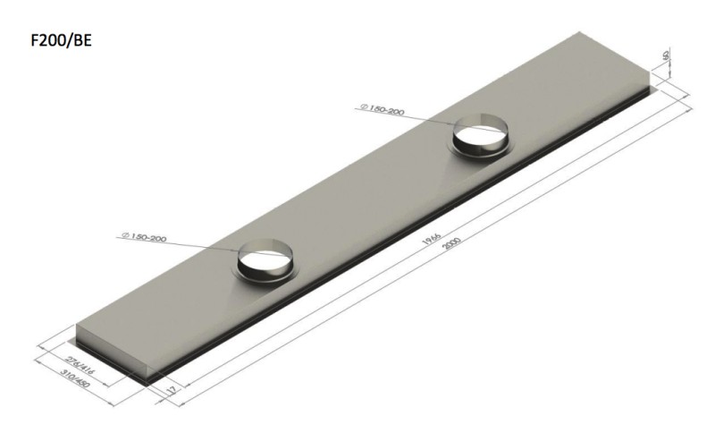 Venduro inbouwgroep - 200cm F200/BE - Dampkap met filterelement, 3 standen