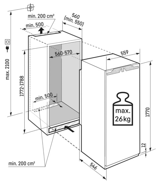 | Hoogte diepvries | 170 - 179 cm hoog |
