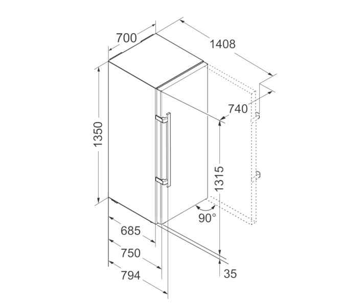 135cm - 70cm breed - 5 vakken - 221L - NoFrost - Wit - Diepvries / Liebherr