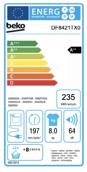 8KG - A+ - Warmtepomp - Kort Programma - Droogkast / Beko