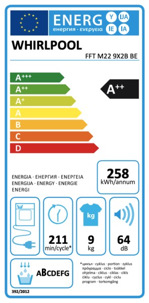 9KG - A++ zuinig - Invertermotor - FreshCare+ - Kort Programma - Droogkast / Whirlpool FFTM 229X2 BBE